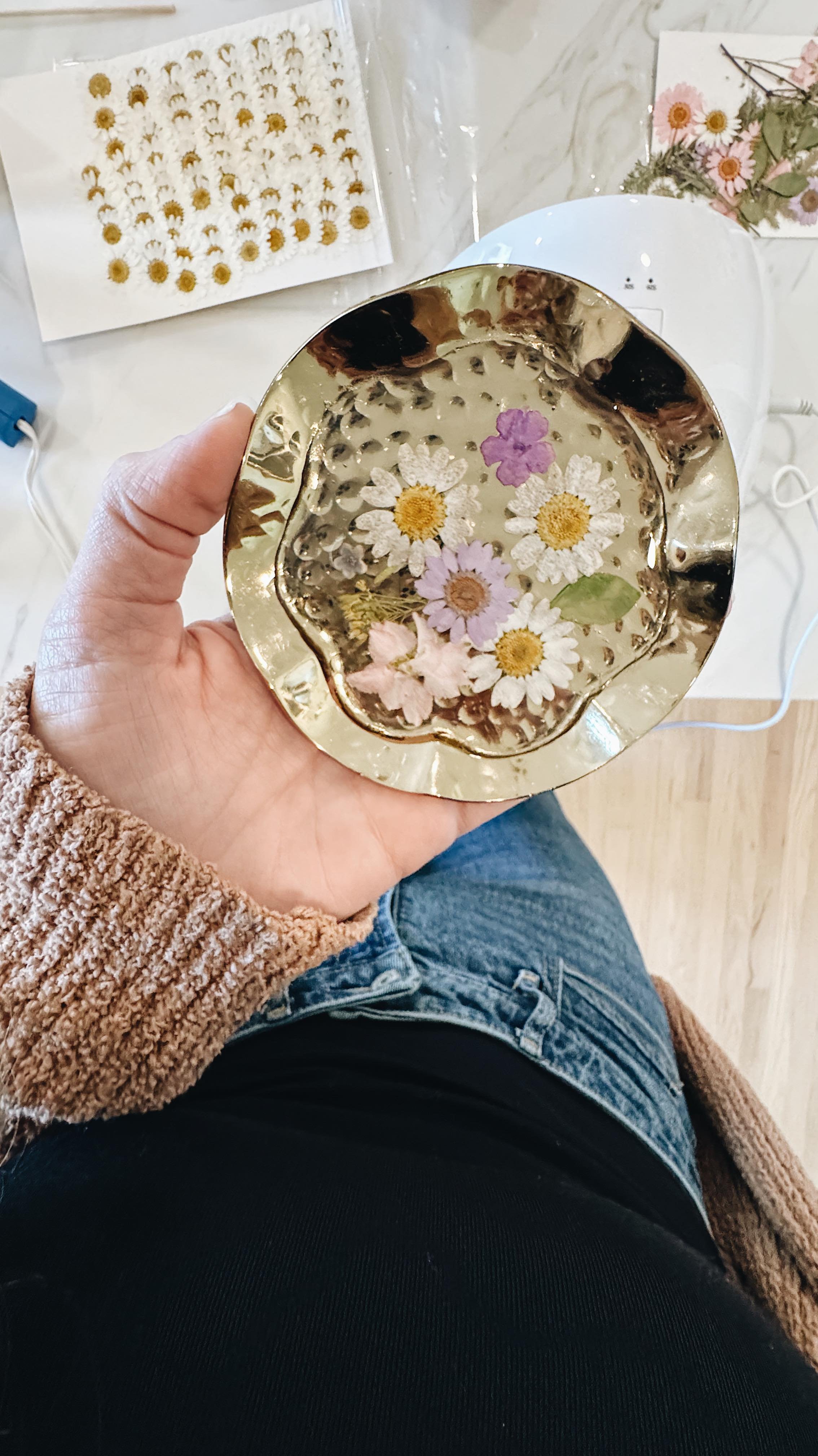 Shop my handcrafted floral trinket trays at Trend & Relic located in St. Charles, IL